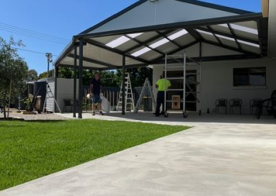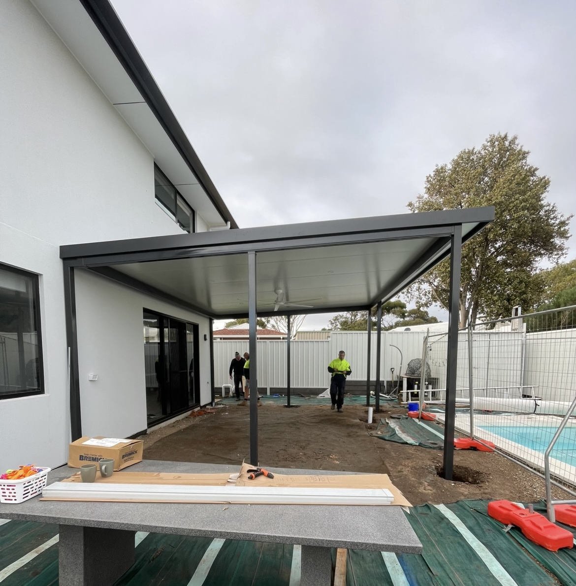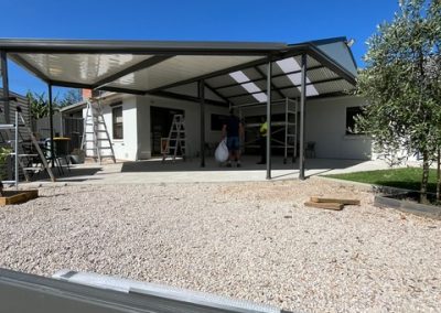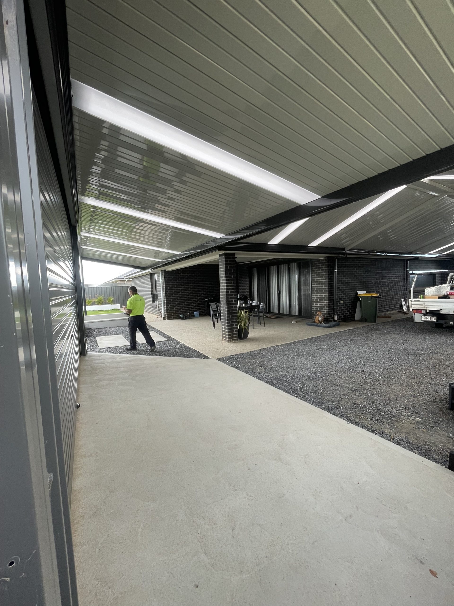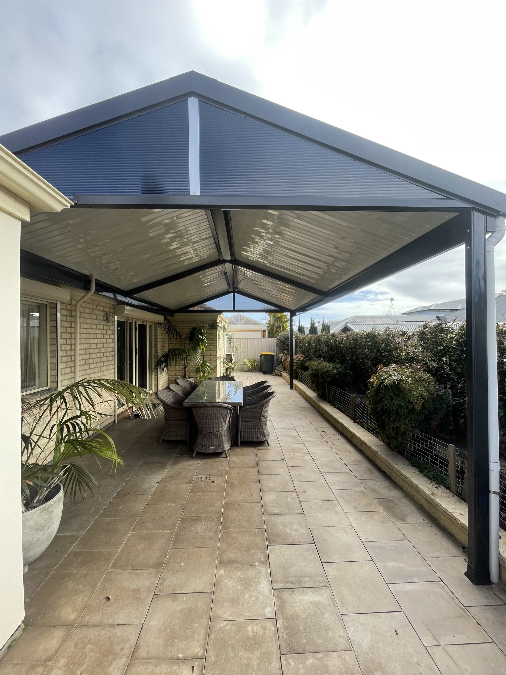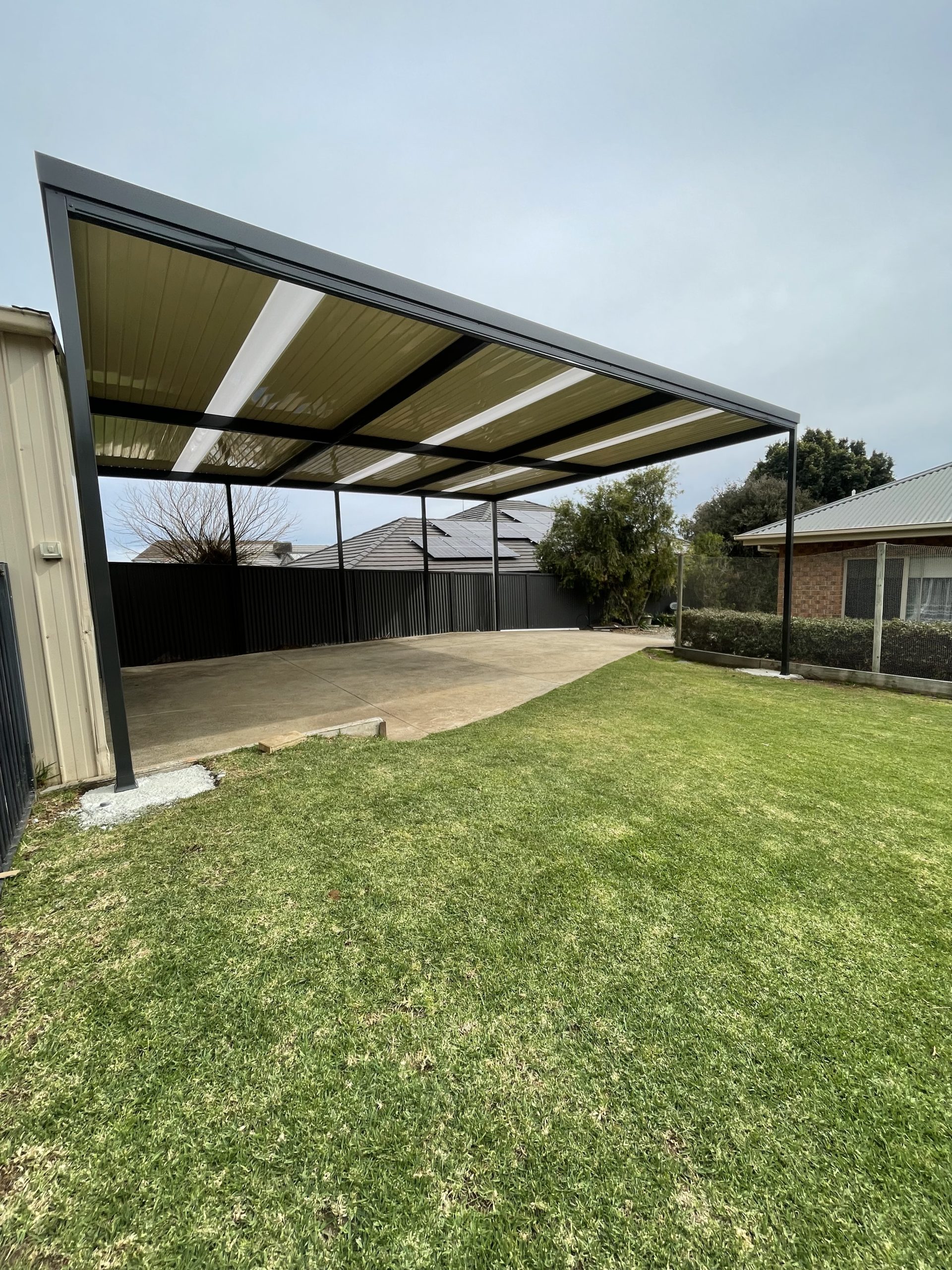 The entire structure including roofing, beams and columns are Australian made using Colorbond ® steel by BlueScope with a 25-year Fielders Platinum Warrantee.